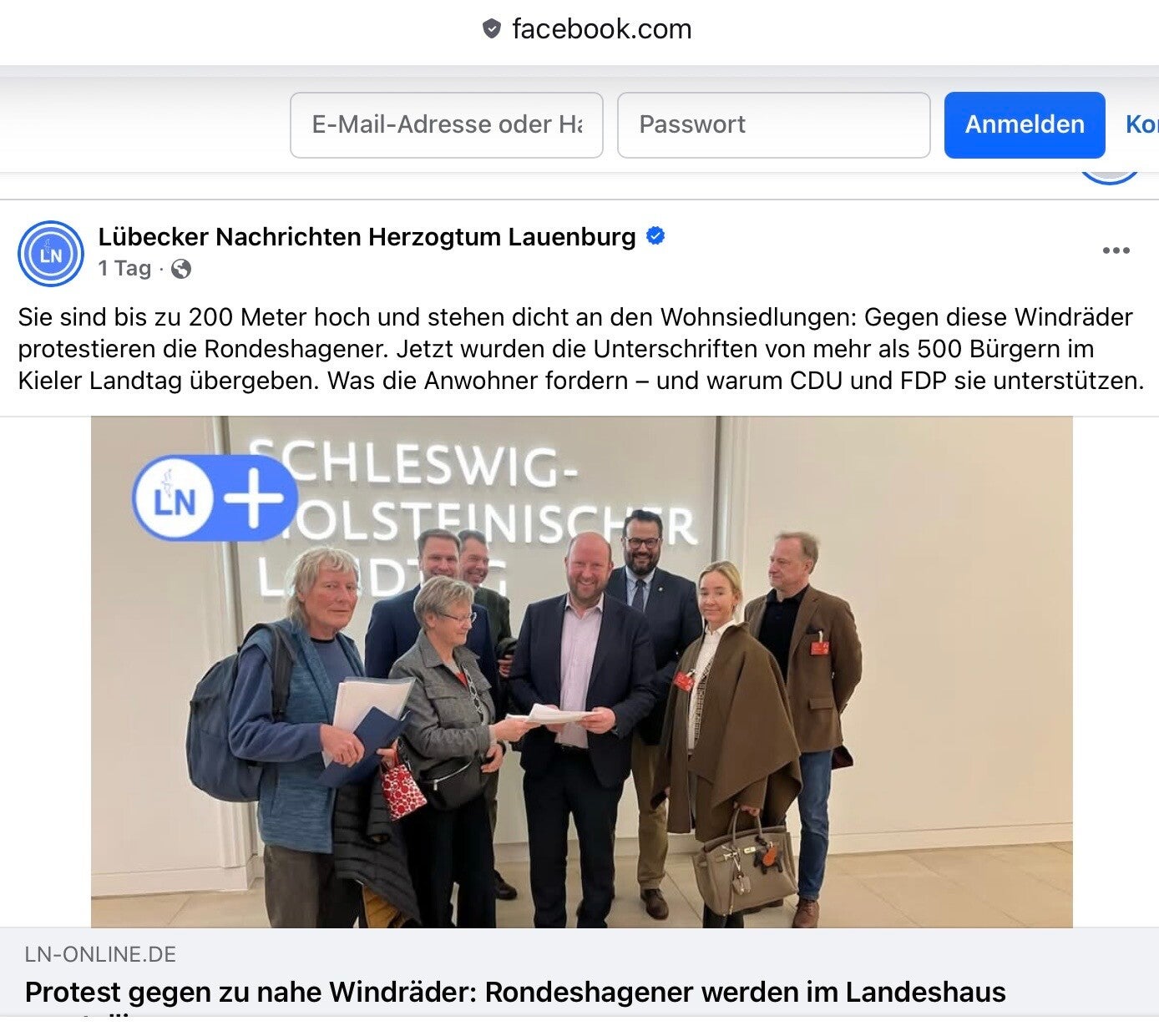 Am 29.01.2026 überreichten wir gemeinsam mit den Politkern Rasmus Vöge und Christopher Vogt unsere Unterstützerliste zusammen mit unserer Informationsmappe an den Staatssekretär Dr. Sönke Schulz in Kiel. Über 500 Bürger haben für unsere Interessen unterzeichnet. Mit 360 Unterschriften aus Rondeshagen sind das über 50% der wahlberechtigten Mitbürger aus Rondeshagen, die sich gegen die aktuellen Pläne der Landesregierung aussprechen.